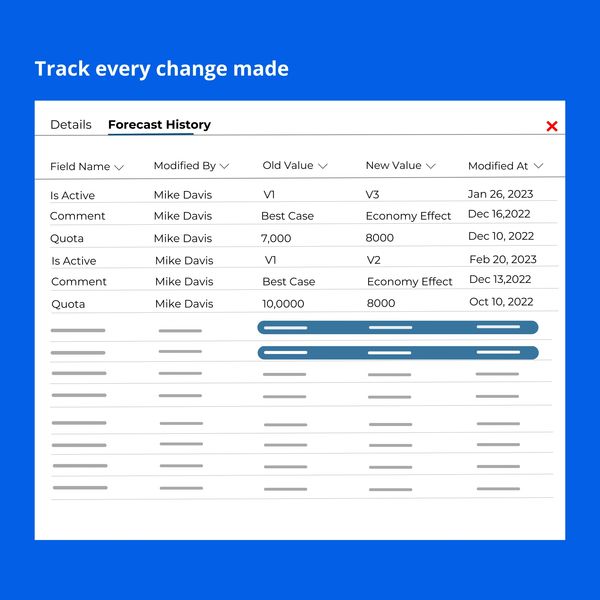 Track essential updates and changes made to the forecasts by your team since quota allocation. This visibility allows managers to create better systems that result in accurate predictions and assured success.